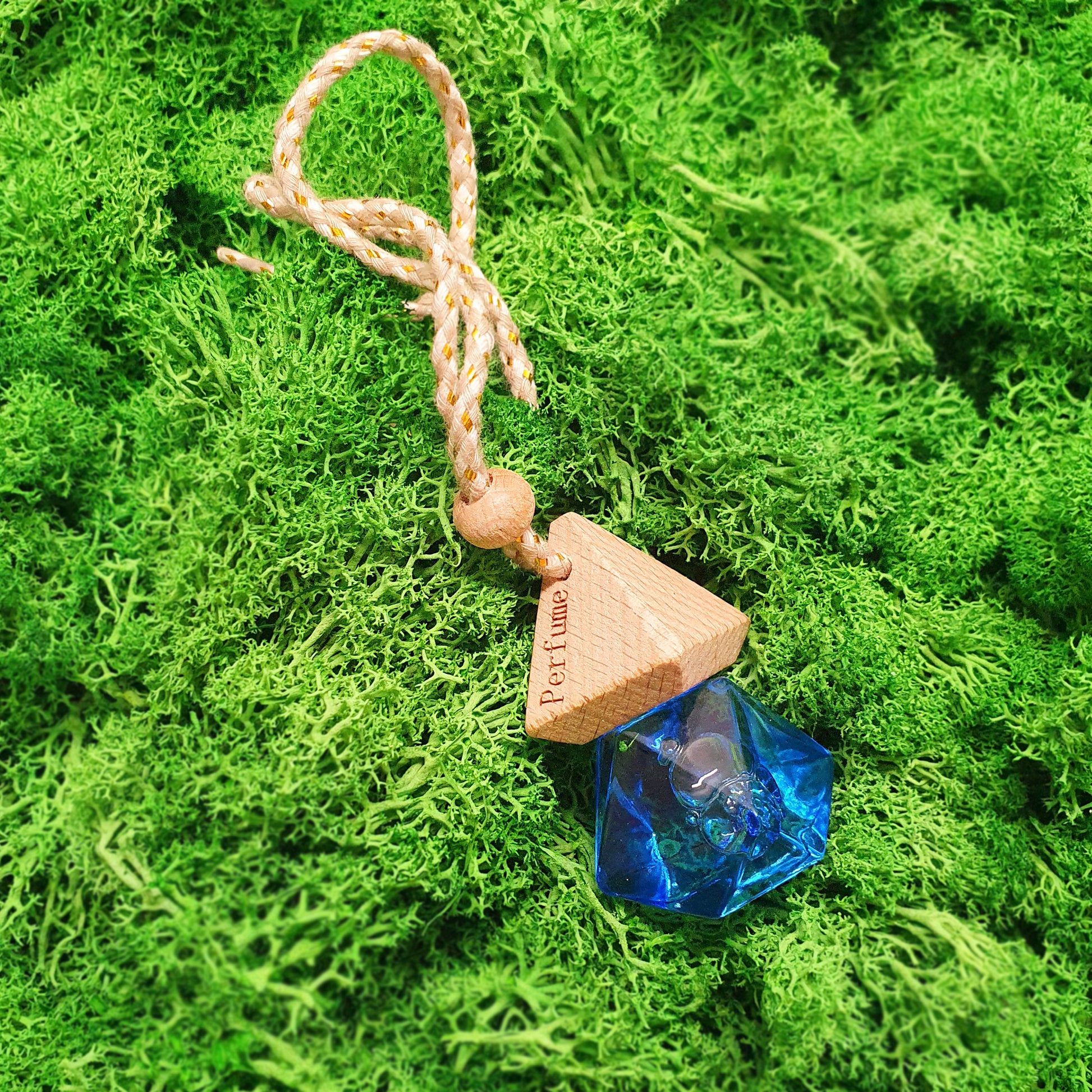 Rankų darbo pakabinamas automobilio kvapas iš parfumuoto aliejaus.